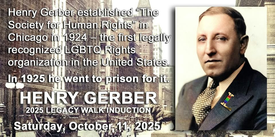 The Legacy Project will induct Chicago LGBTQ+ icon and activist Henry Gerber—founder of the Society for Human Rights, the first LGBTQ+ rights organization in the U.S.—into the Legacy Walk outdoor museum on Halsted Street.